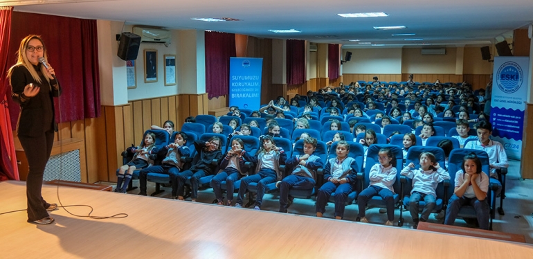 ESKİ, Soner Özübek Ortaokulu öğrencilerine su tasarrufunu anlattı.