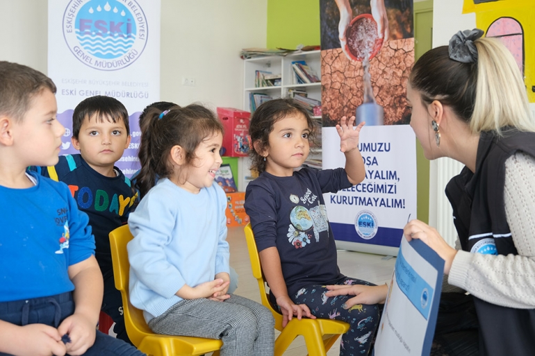 Eskişehir Büyükşehir Belediyesi Su ve Kanalizasyon İdaresi Genel Müdürlüğü (ESKİ), verdiği eğitimler ile çocuklara su tasarrufu ve bilinçli su kullanımını öğretiyor.