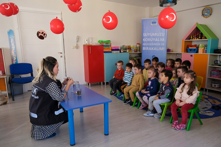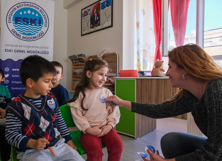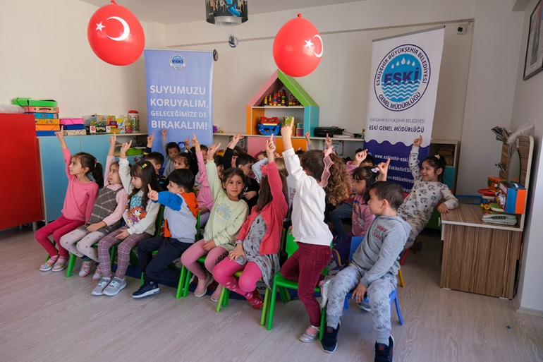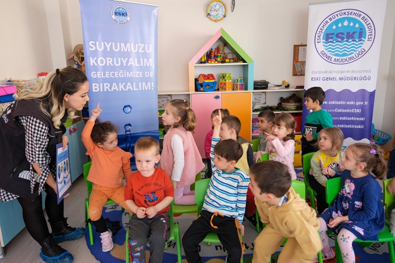 Eskişehir Büyükşehir Belediyesi Su ve Kanalizasyon İdaresi Genel Müdürlüğü (ESKİ), okullarda ve kreşlerde verdiği eğitimler ile çocuklara su tasarrufu ve bilinçli su kullanımını öğretiyor.