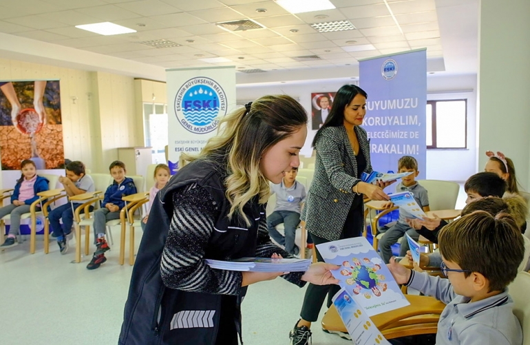 Eskişehir Büyükşehir Belediyesi Su ve Kanalizasyon İdaresi Genel Müdürlüğü (ESKİ), verdiği eğitimler ile çocuklara su tasarrufu ve bilinçli su kullanımını anlatıyor.