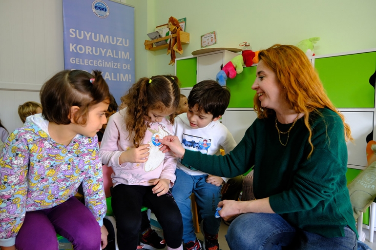 Eğitim sonunda çocuklara su tasarrufunu destekleyici görev çizelgeleri, su kahramanları rozeti ve ESKİ Genel Müdürlüğünün çocuklar için hazırladığı "Geleceğimiz Susuz Kalmasın" adlı bilgilendirici boyama dergisi hediye edildi.