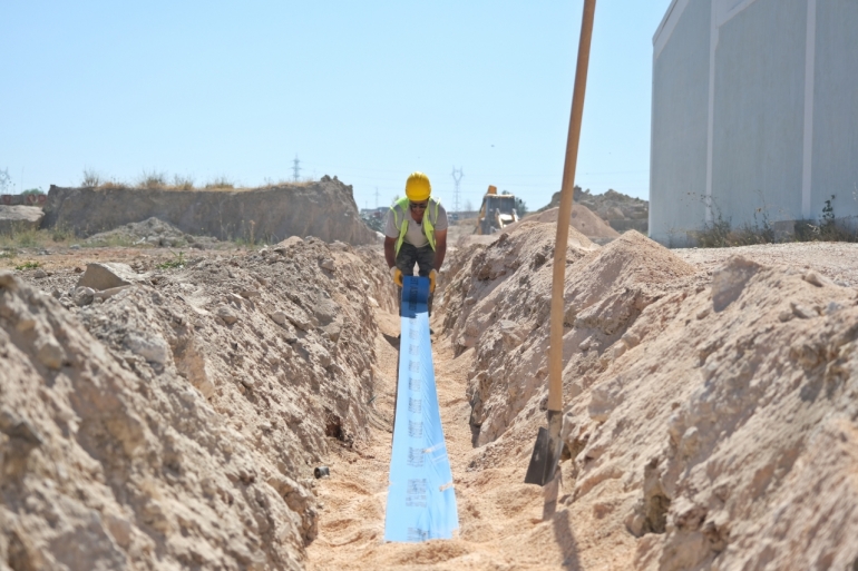 Bölgedeki sanayi parsellerinin su ihtiyacını kesintisiz karşılamak için 6.696 metre uzunluğunda içme ve kullanma suyu hattı imal edildi. Altyapıda 160 mm, 110 mm ve 63 mm çaplarında yüksek yoğunluklu polietilen borular tercih edilerek hem dayanıklılık hem de uzun ömürlü bir iletim sistemi oluşturuldu. Her bir parsel için abone bağlantı hatları tamamlanarak üretim tesislerinin su temininde yüksek verimlilik hedeflendi.